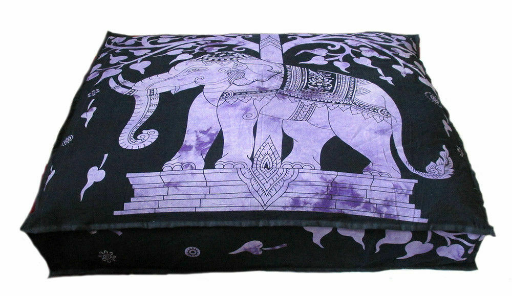 Elephant Mandala Cotton Floor Pillow Ethnic Indian Meditation Square Cushion Art