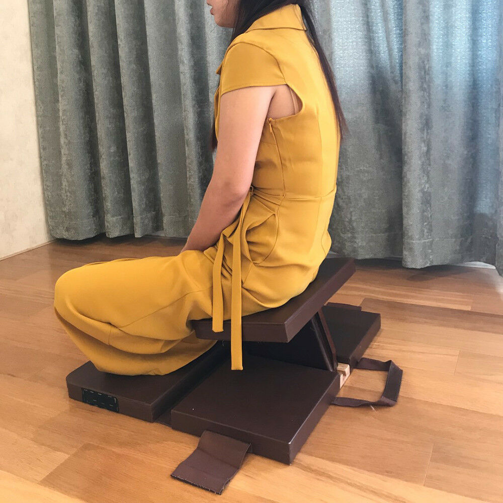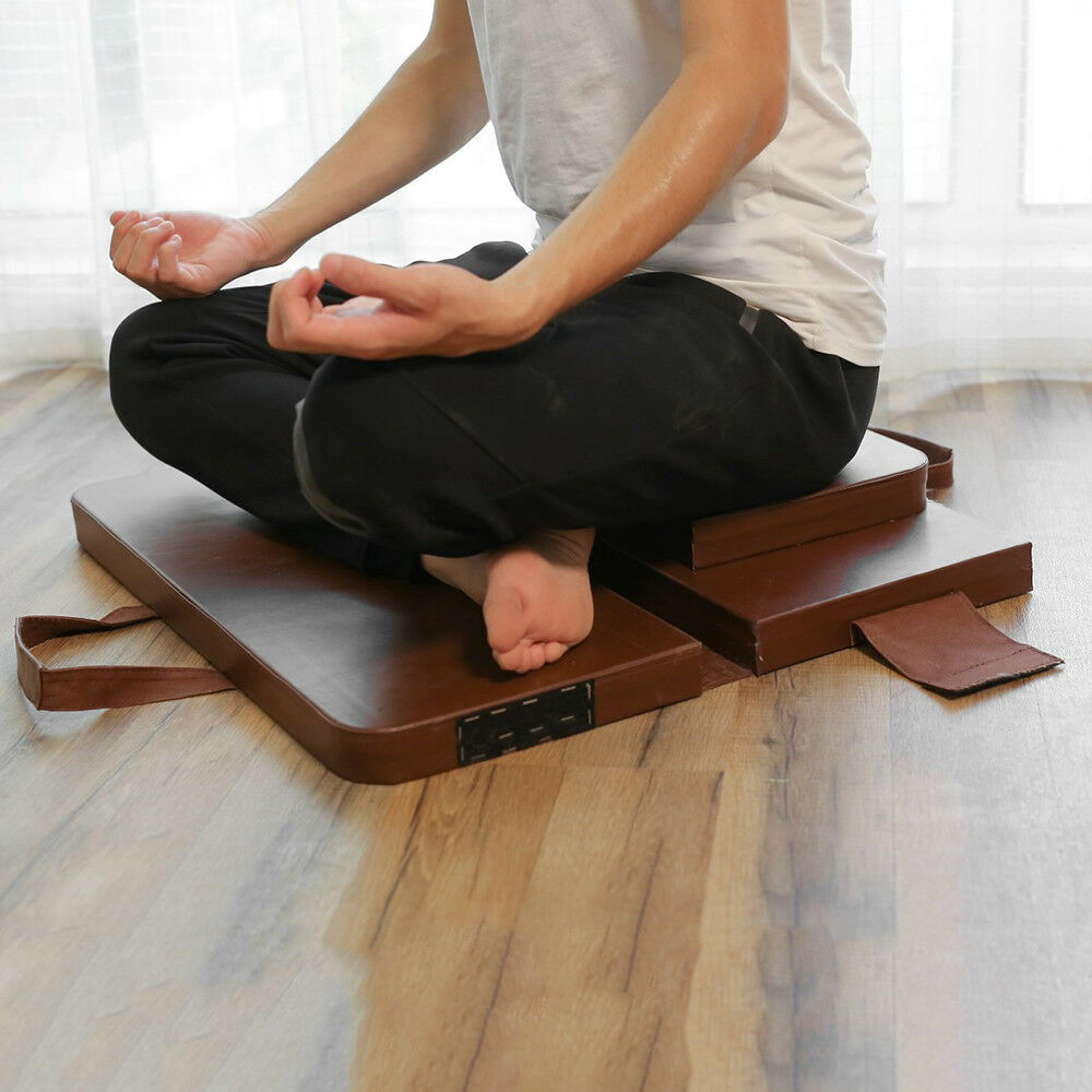PORTABLE FOLDING MEDITATION STOOL WOOD ZEN GARDEN BENCH YOGA CHAIR KNEELING PAD