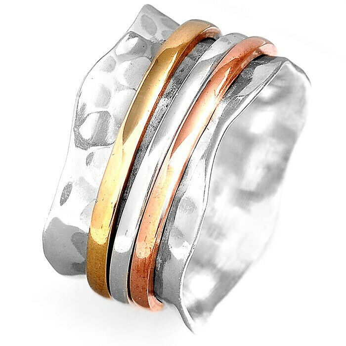 Sterling Silver 925 Spinning Ring Meditation Spin Spinner Tapping Size Boho Co2