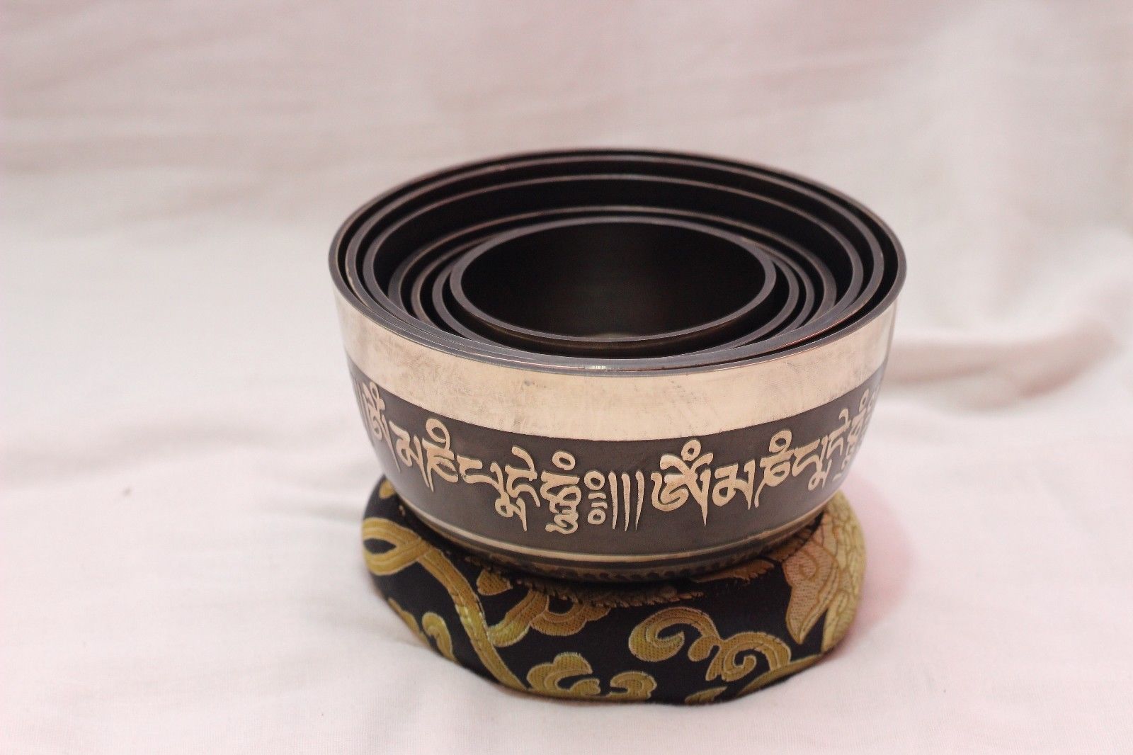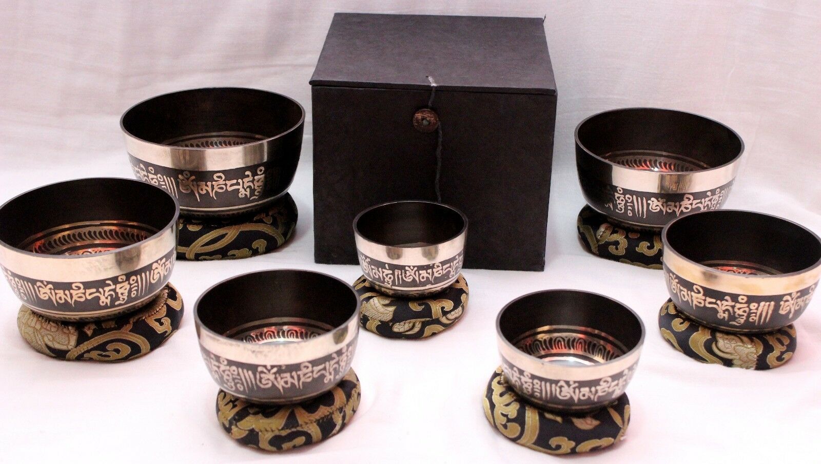 Om Mani Padme Hum Tibetan Singing Bowl Set of 7-Chakra Healing Meditation Bowls