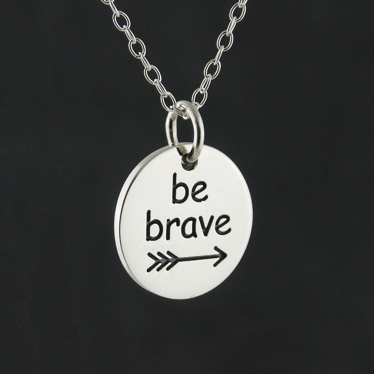 Be Brave Arrow Necklace - 925 Sterling Silver - Round Bravery Pendant Gift NEW