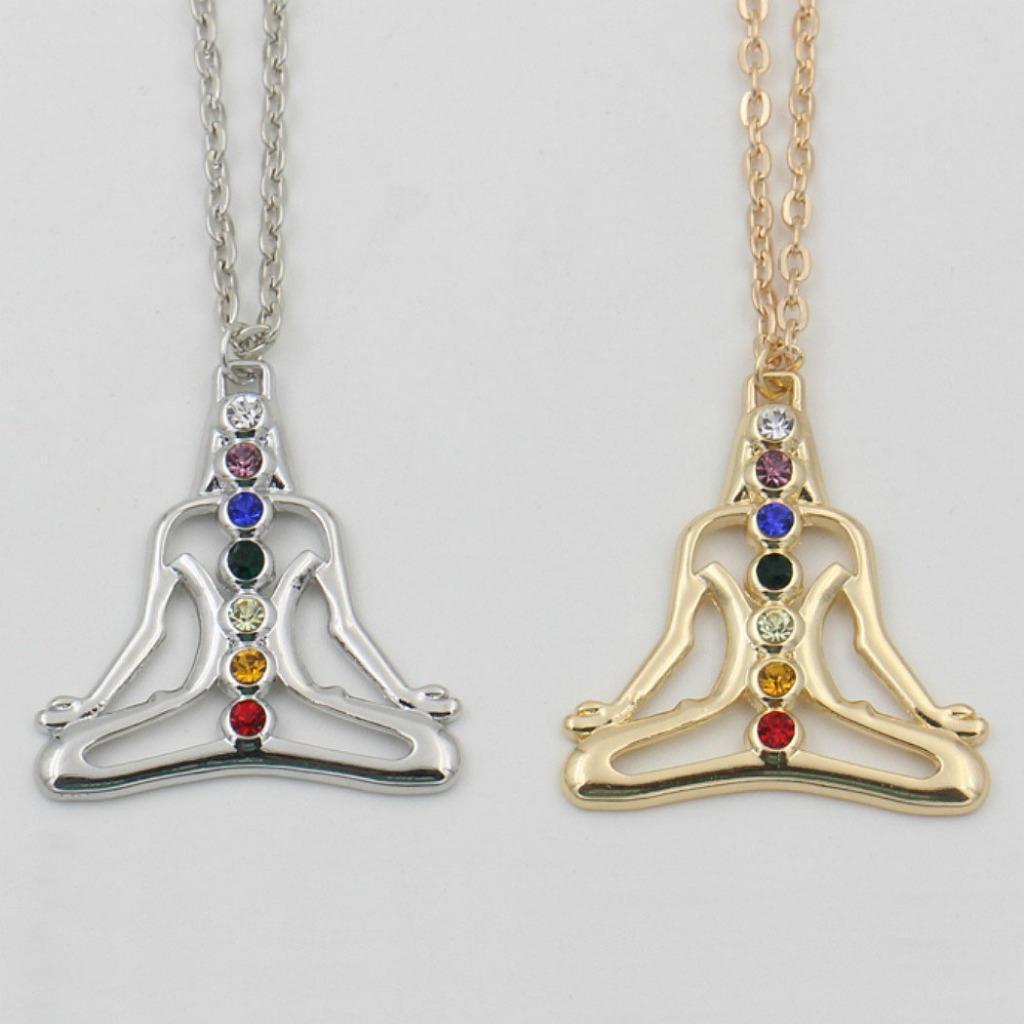 CHAKRA NECKLACE 18" Chain Yoga Meditation Buddha Multi Color Rhinestone Pendant