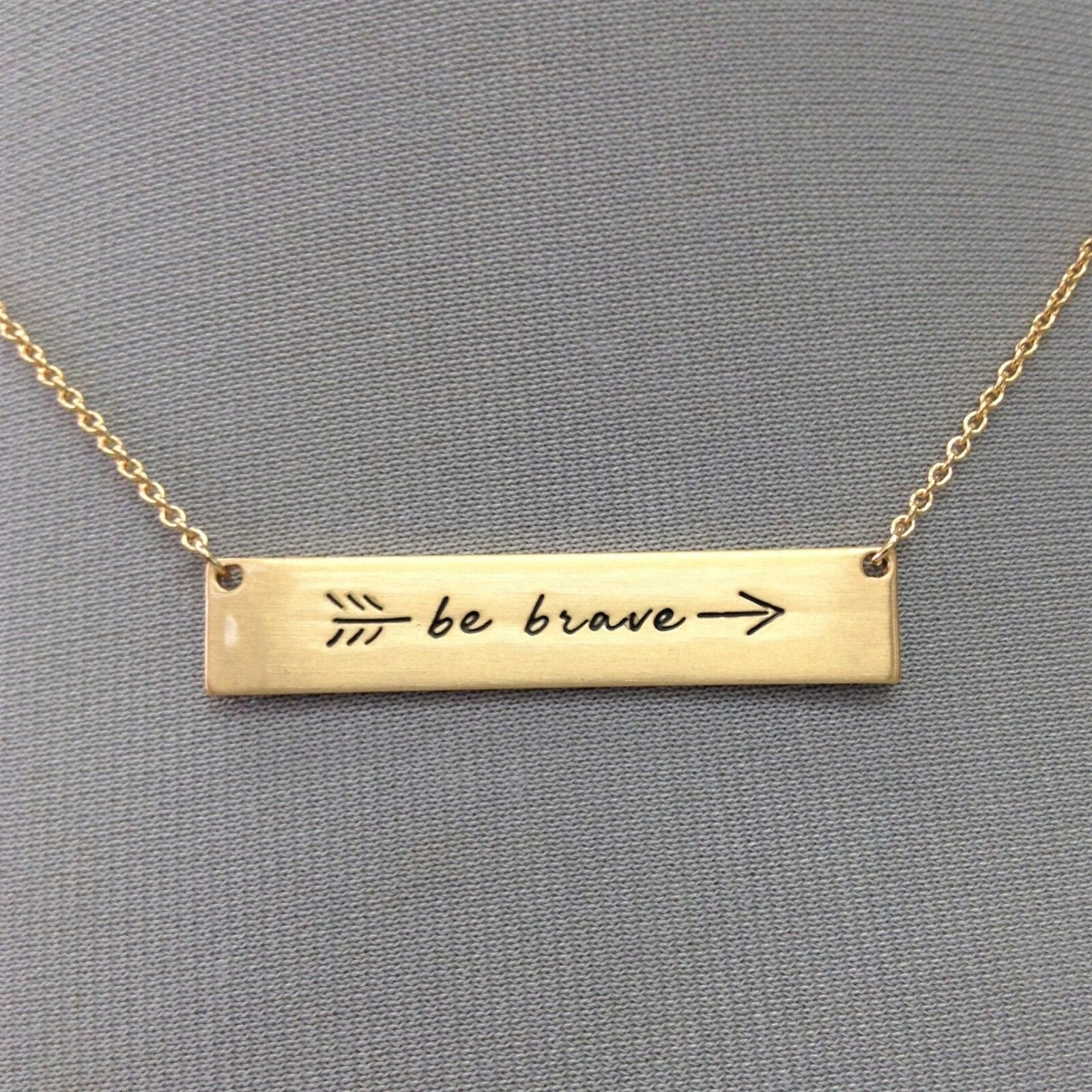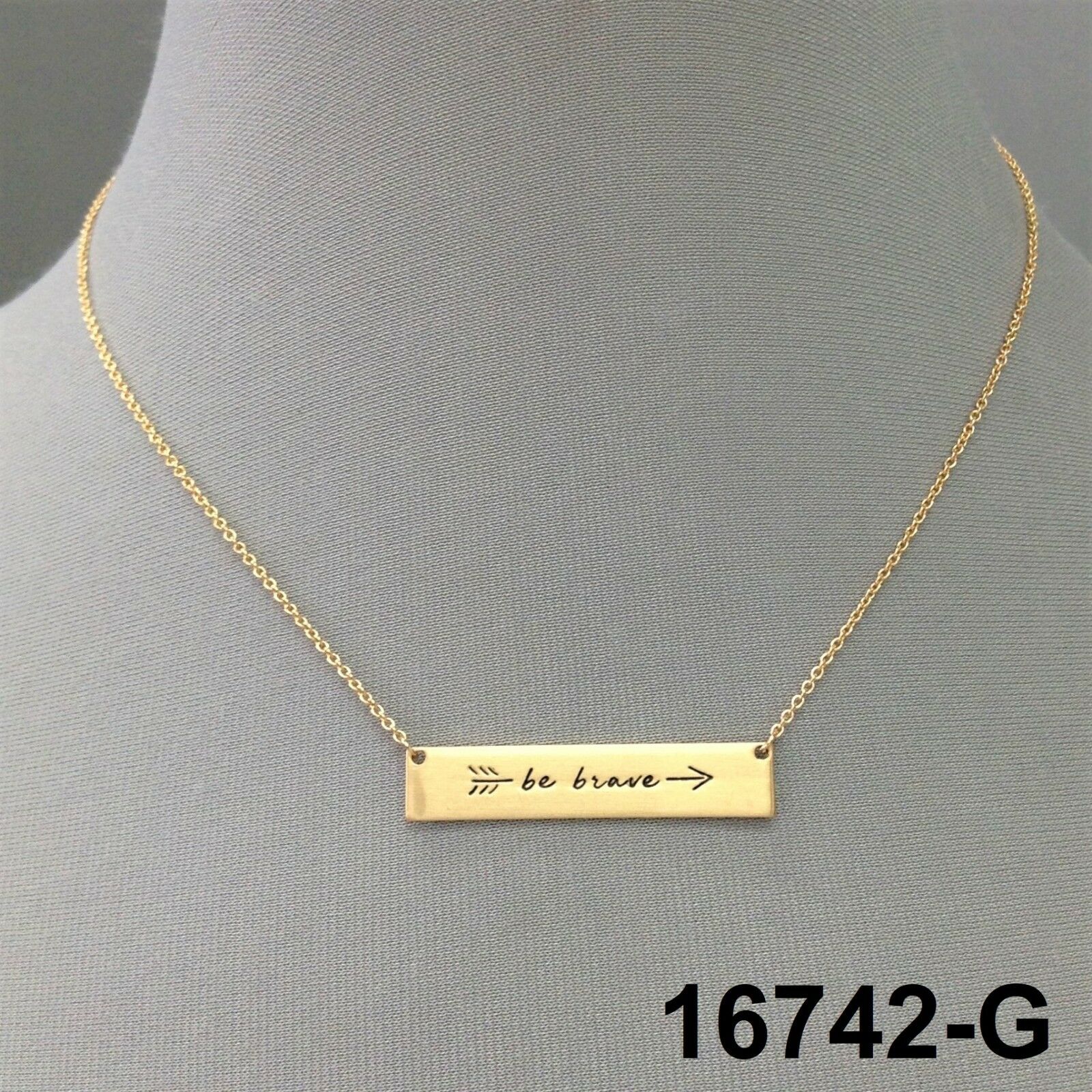 Elegant Simple Gold Finish BE BRAVE Phrase Engraved Bar Pendant Necklace