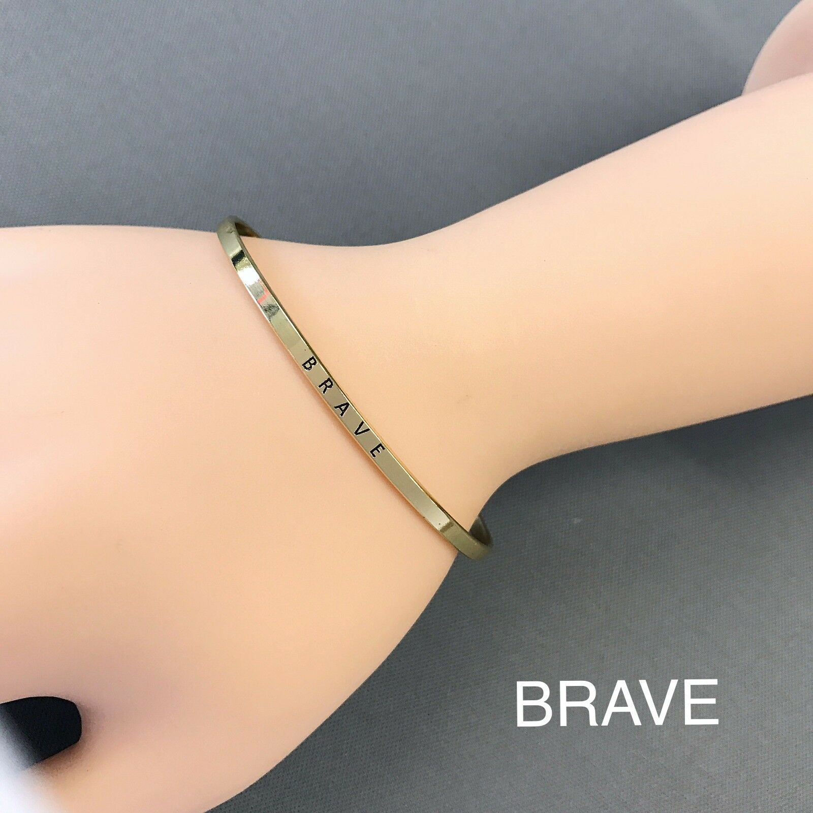 Gold finished BRAVE Message Engraved Vintage Brass Classic Bangle Bracelet