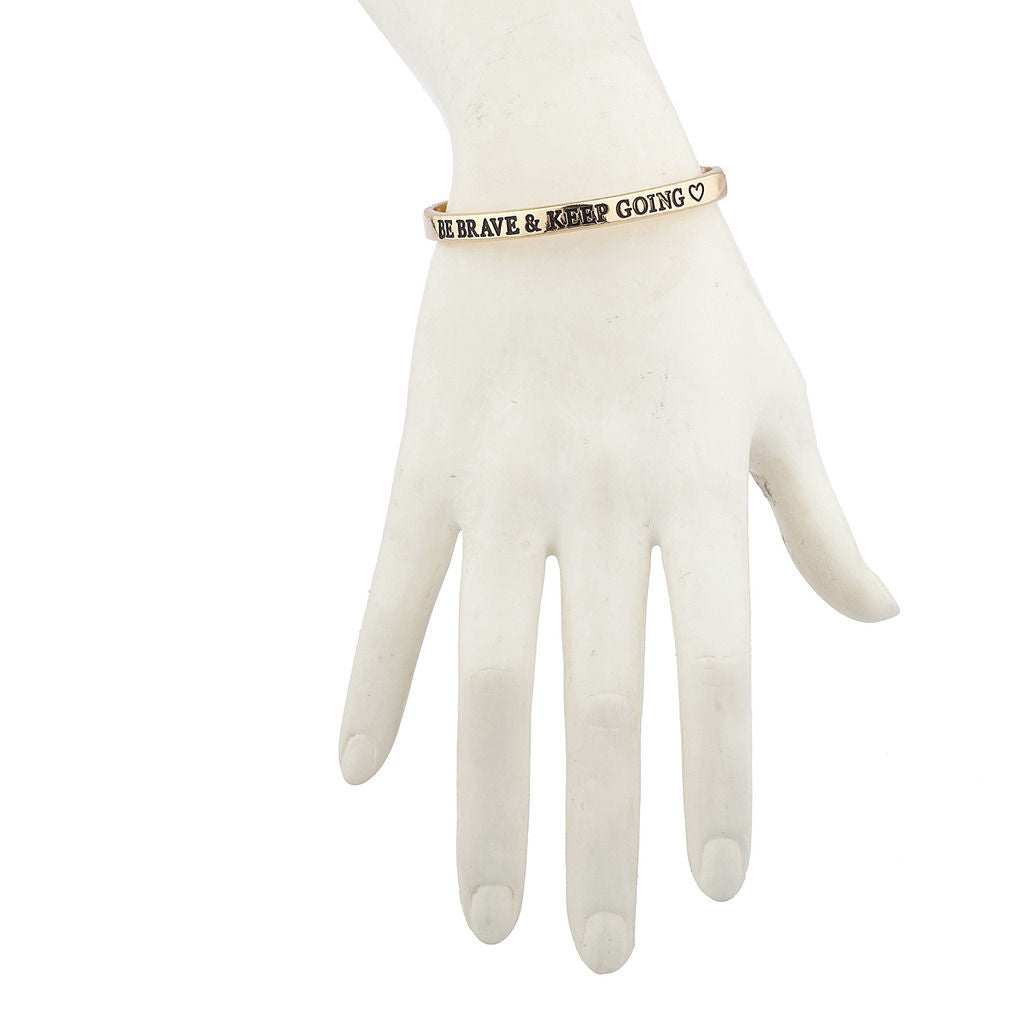 Lux Accessories Goldtone Be Brave and Keep Going Inspirational Bangle Bracelet