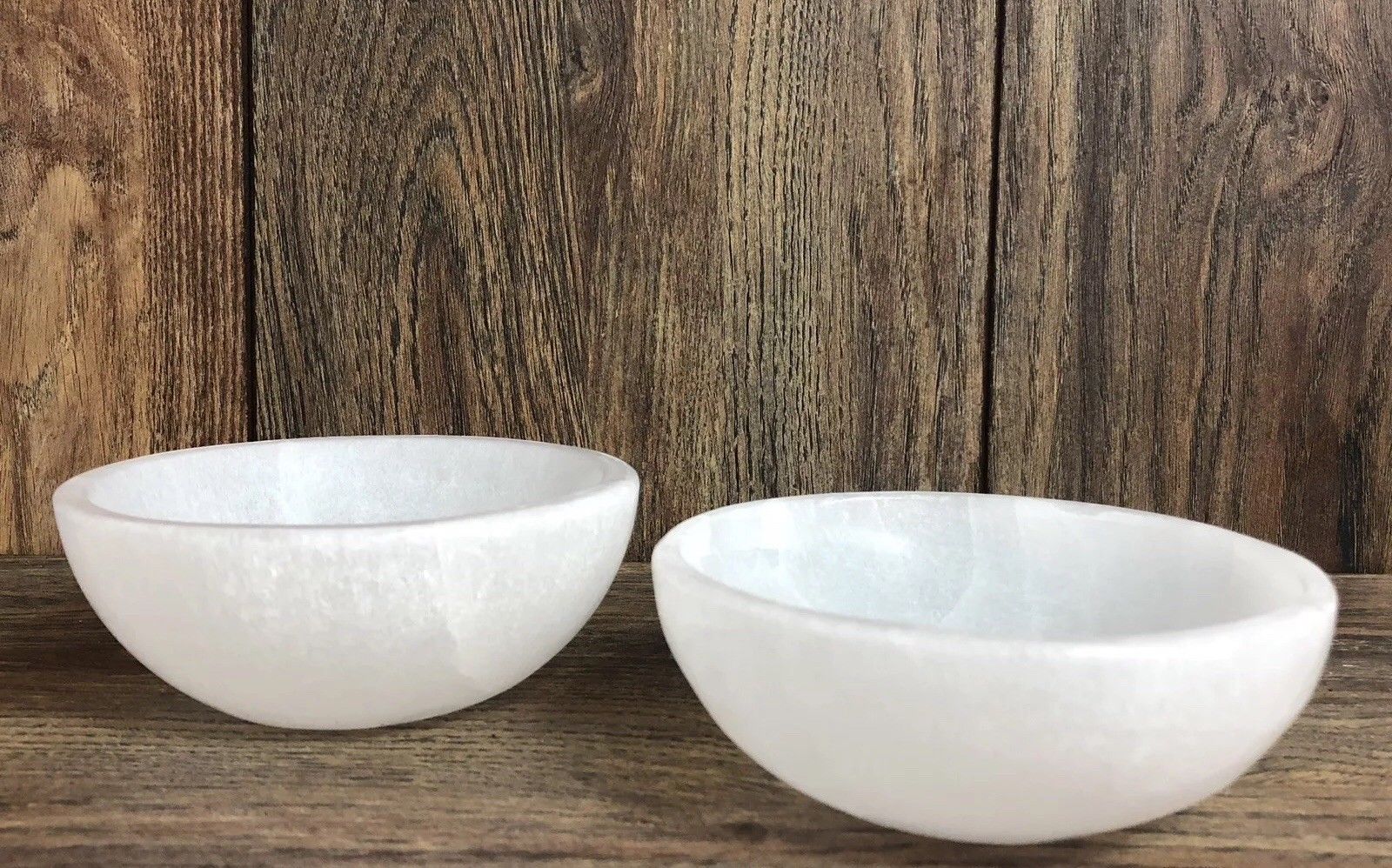 4” Selenite Bowl Stone Kitchen Dish Spice Herb Ritual Reiki Chakra Meditation.