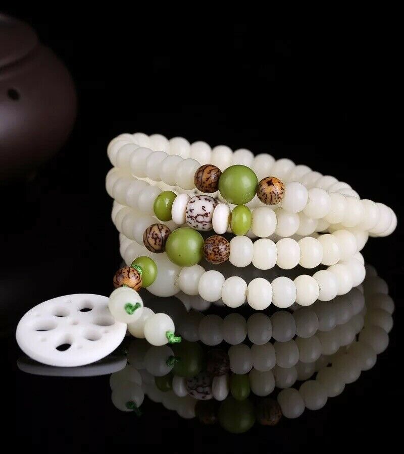 Malasation White Bodhi 108 Mala Beads Bracelet Necklace Lotus Elastic Meditation