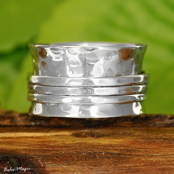 Sterling Silver 925 Ring Meditation Hammered Spin Spinning Jewelry Unusual Size